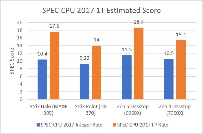 Looking at the SPEC CPU 2017 Integer subtests and while Strix Halo can’t quite match the desktop 9950X, likely due to the higher memory latency of Strix Halo’s LPDDR5X bus, it does get close in a number of subtests.