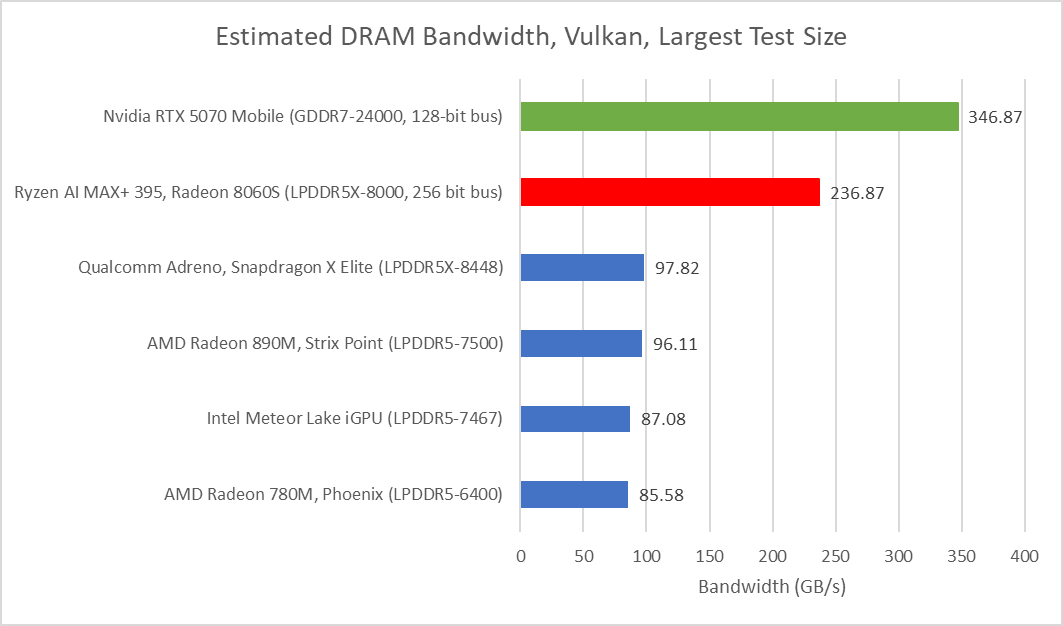 Strix Halo has over double the memory bandwidth of any of the other mobile SoCs that we have tested. However, the RTX 5070 Mobile does have about 50% more memory bandwidth compared to Strix Halo.