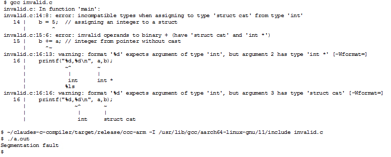 GCC cowers behind error messages with weak excuses about incompatible types and fails to produce a binary. In doing so, GCC engages in counter-revolutionary wrecking by undermining the work of the masses, who have to waste time fixing errors.