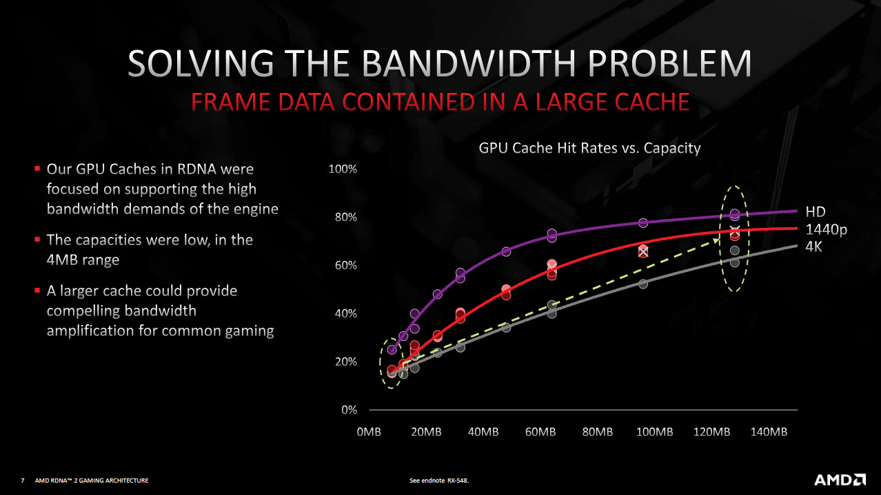 AMD presented a slide at Hot Chips 2021 with three lines for different resolutions across a set of different cache capacities. I obviously can’t test different cache capacities. But AMD’s slide does beg the question of how well a 32 MB cache can do at a wider range of resolutions, and whether bandwidth demands remain under control at resolutions higher than what AMD may have optimized the platform for.