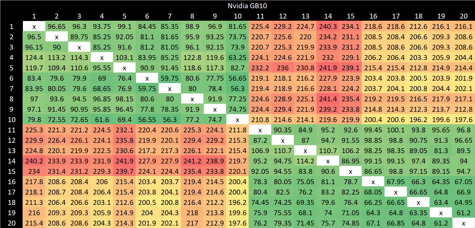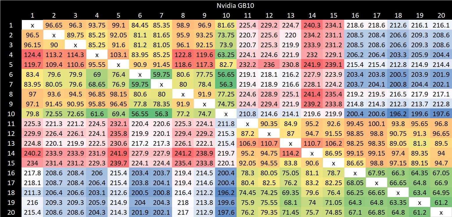 CPU cores on GB10 are split into two clusters. Each cluster has five A725 cores and five X925 cores. Core numbering starts with the A725 cores within each cluster, and the two clusters come after each other. All of the A725 cores run at 2.8 GHz. X925 cores clock up to 3.9 GHz on the first cluster, and up to 4 GHz on the second.