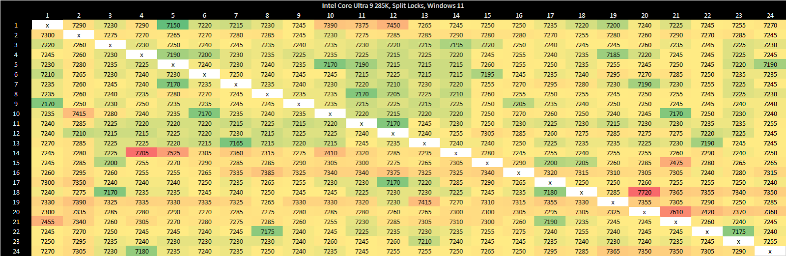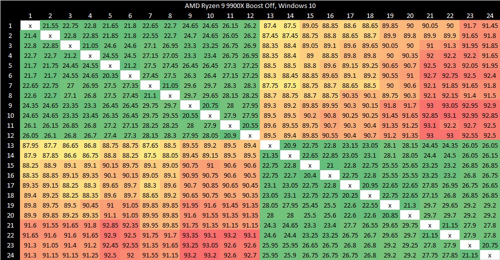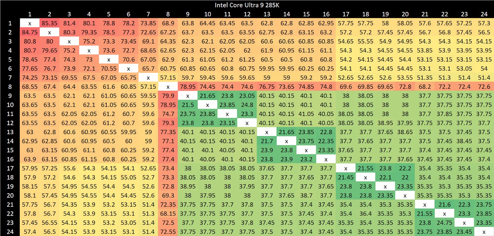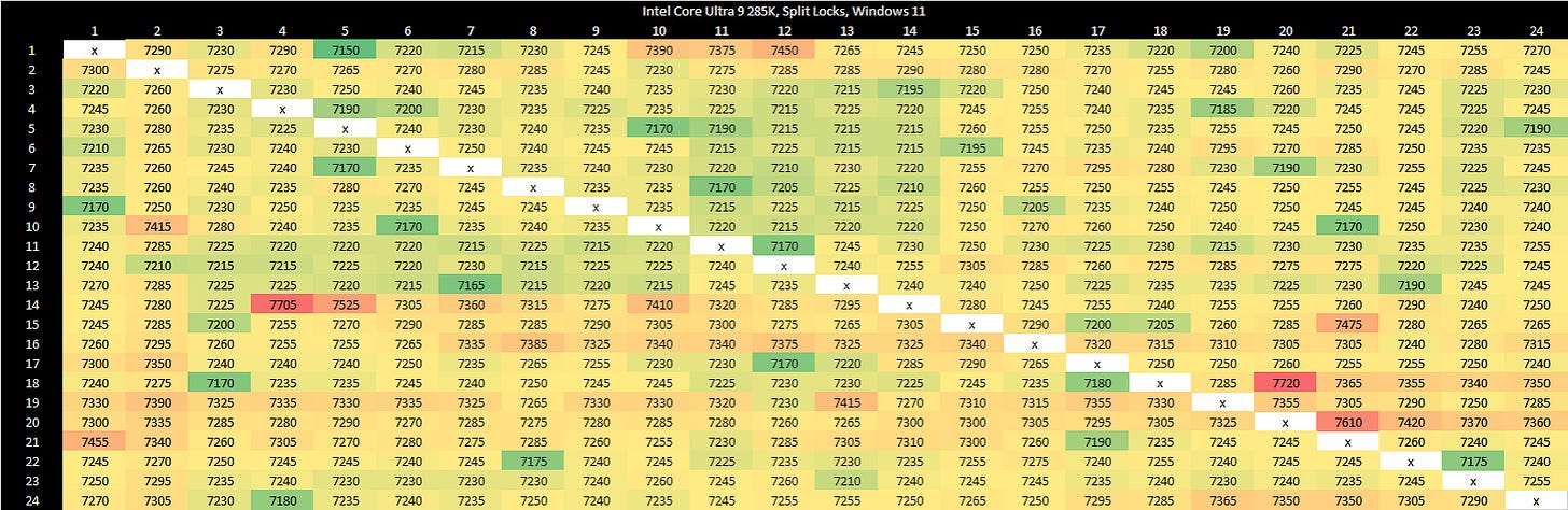 Intel’s Arrow Lake gets to be the first victim. Normal core to core latency results look like this: