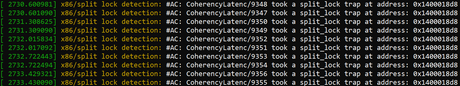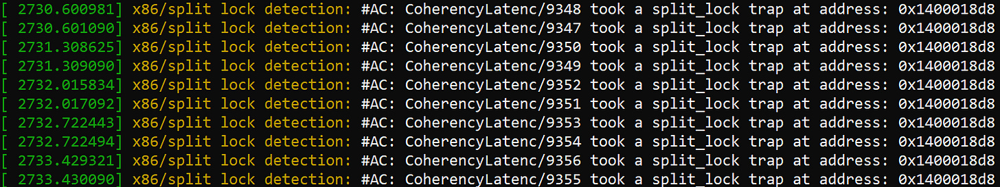 Linux’s split lock mitigation traps split locks and introduces millisecond level delays, aiming to both make split locks “annoying” and provide better quality of service to other applications.