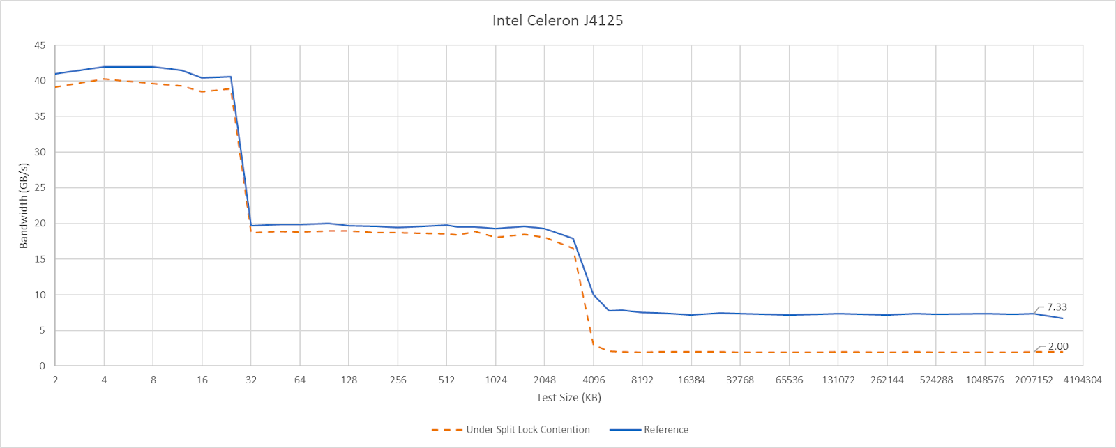 Split locks don’t stop other cores from running code. They’re not the hardware equivalent of Python’s global interpreter lock, or another similar construct that blocks concurrency. On modern CPUs, split locks don’t even block all memory accesses. They only introduce a performance penalty when those memory accesses miss a certain cache level. That performance penalty varies wildly too.