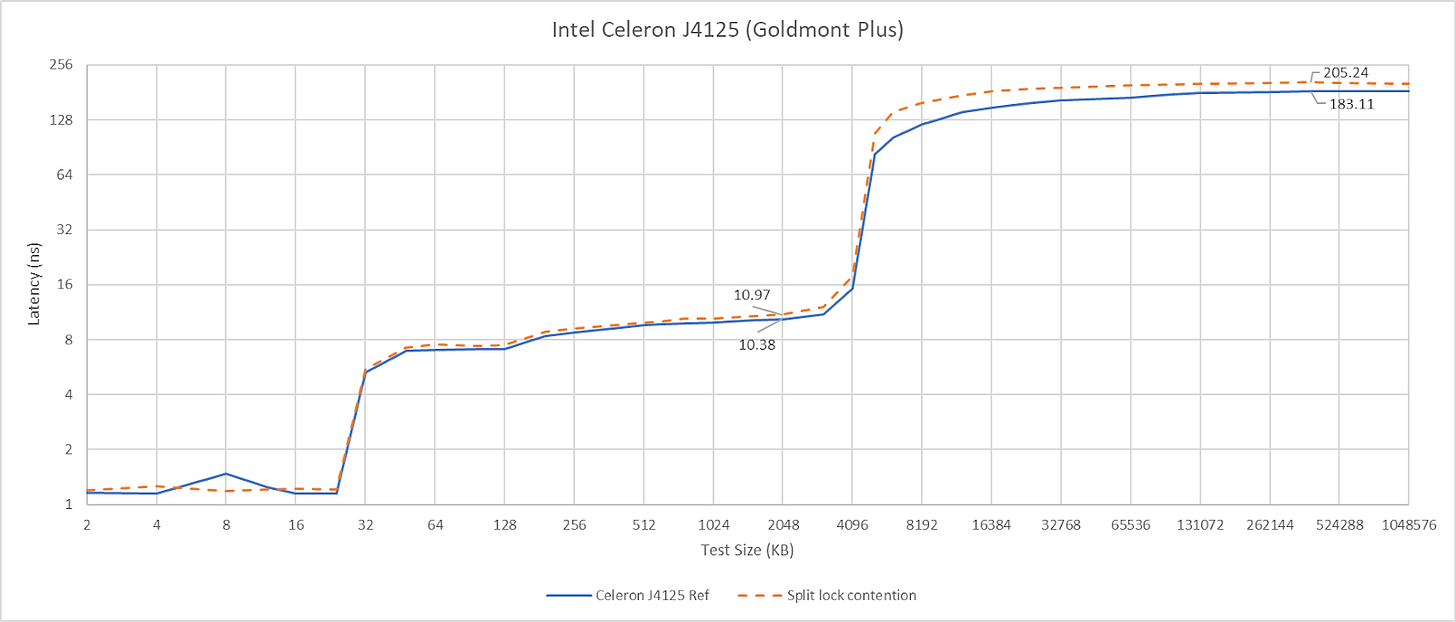 Goldmont Plus has high split lock latency, though it’s still curiously better than Intel’s more modern Arrow Lake and Alder Lake.